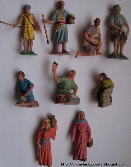 Desconocíamos que estas típicas figuras de los años 70 para Nacimiento también se habían vendido en varias coladas monocromáticas de plástico y sin pintar después a mano. Vacas, cerdos, cabras, ovejas, burros, pastores, casitas y parte del Misterio a falta de La Virgen Maria y la mula forman nuestra pequeña colección. Las encontramos hace un año en una tienda con restos de material de quiosco y ahora seguiremos buscando alguna que otra pieza sobre todo las principales que os comentamos.