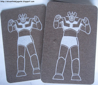 Aprovechando que estos días un conocido diario deportivo entrega los fines de semana DVDs de la mítica serie de televisión Mazinger Z os enseñamos estas cartas de dicho personaje que venían en sobres que daba la marca de pipas Jem. Nos faltaba su caja y en internet habíamos localizado la que suponemos era la original (unos dicen que esta baraja no tenía) la hemos imprimido y nos ha quedado muy autentica.
